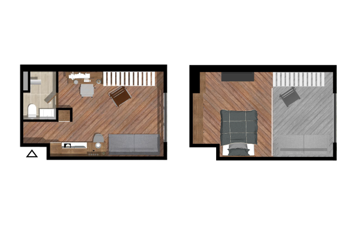 El primer piso cuenta con un local comercial, un estudio de doble altura con área común de uso exclusivo, zona de recepción y depósito, gimnasio y jardín interior.